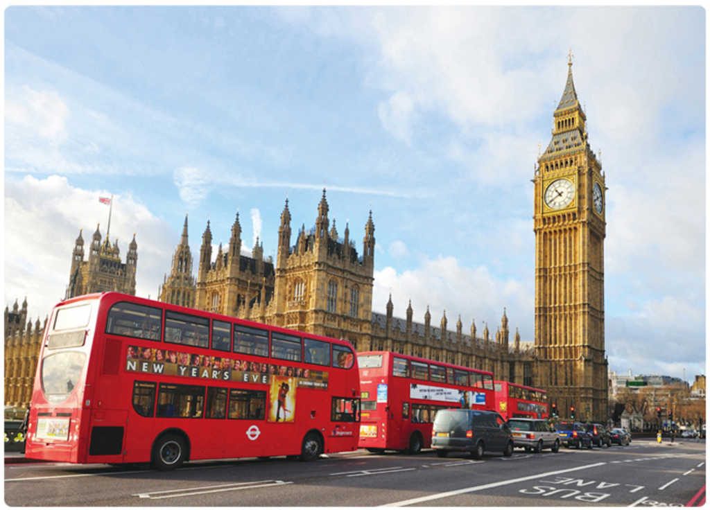 Puzzle skládačka ze které si můžete sestavit foto motiv Londýna se svými typickými dvoupodlažními autobusy - doubledeckery. Baleno v krabici.