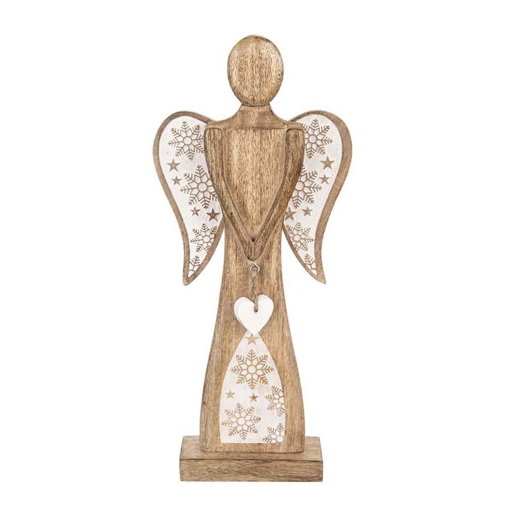 Anděl s bílým srdcem a vločkami O0357 - 20 x 5,5 x 45,5 cm
