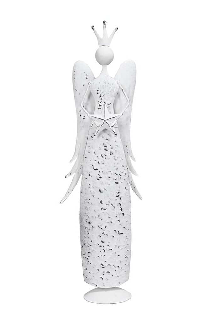 Dekorační kovový anděl. Rozměry : 38 x 25,5 cm, výška 19 cm. Barva : bílá patina. Materiál : kov.Rozměr: 38 x 25,5 x 19 cm
