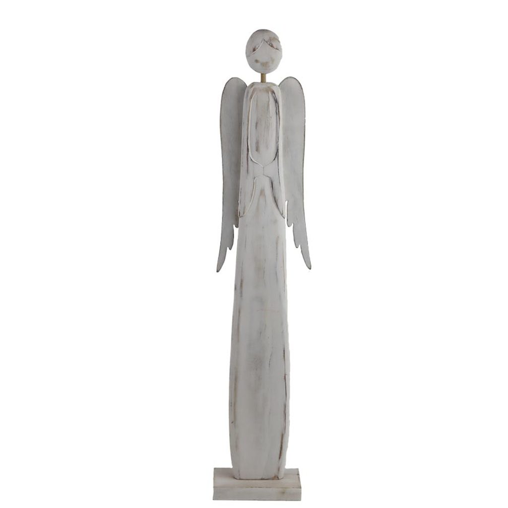 Dekorační anděl. Rozměry : 10,2 × 5 cm, výška 51 cm. Barva : bílá. Materiál na bázi dřeva.Rozměr: 10,2 × 5 x 51 cm