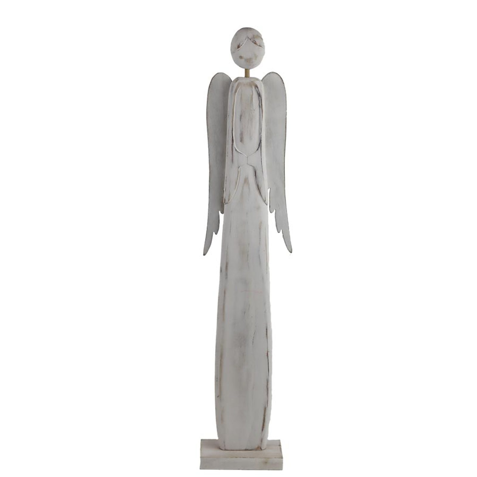 Dekorační anděl. Rozměry : 10,2 × 5 cm, výška 51 cm. Barva : bílá. Materiál na bázi dřeva.