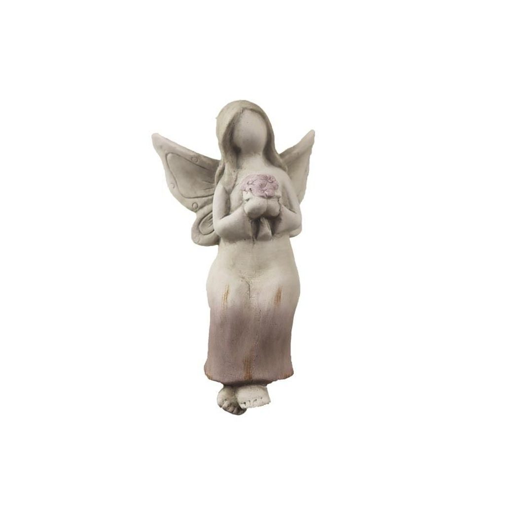 Dekorační anděl. Rozměry : 9,5 × 9 cm, výška 16 cm. Barva : kombinace šedá s růžovou. Materiál : keramika.Rozměr: 9.5 × 9 × 16 cm