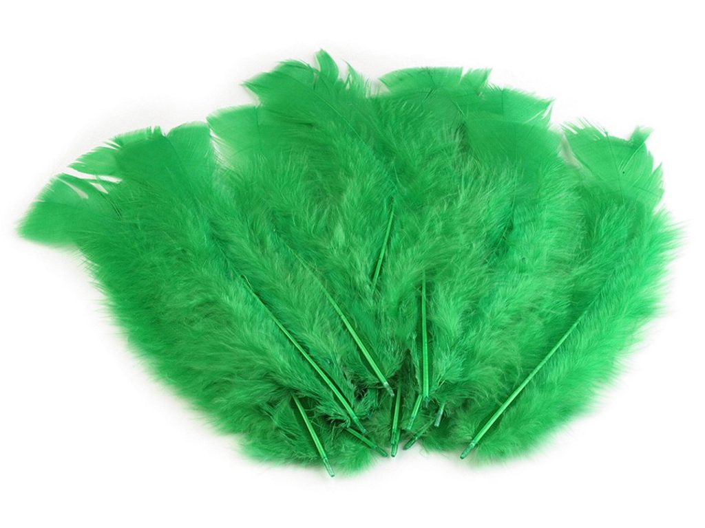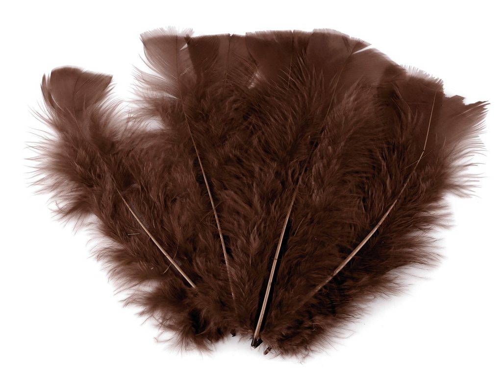 [Ozdobné krůtí peří má jedinečný vzhled.] V dolní polovině se skládá z jemného chmýří a horní polovinu tvoří plochá část pírka, která má rovný tvar. Peří působí velmi luxusně. Jeden sáček obsahuje 20 kusů peří. Použití: Peří můžete použít na výrobu fascinátorů, karnevalových kostýmů nebo ho naaranžovat do vázaných kytic, ikeban a dalších dekorací.