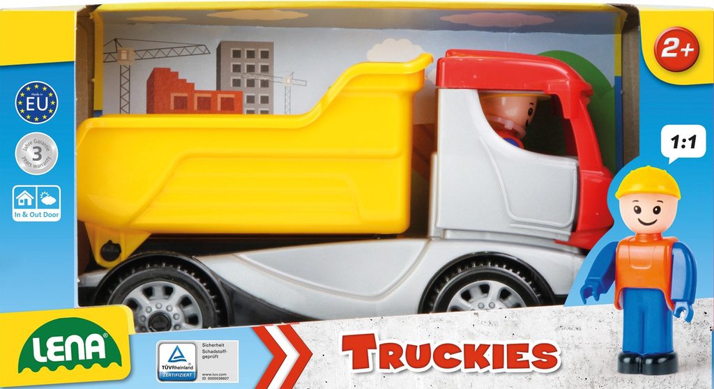 Truckies sklápěč z kvalitního plastu a velmi pevnou stavbou. Plně mechanicky funkční. Obsahuje odklopitelnou kabinu s aktivním panáčkem.