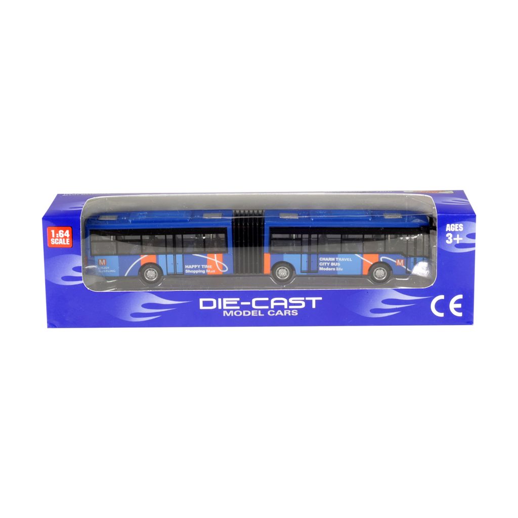 Kovový model autobusu, jezdí na zpětný setrvačník. Délka autobuse je cca 18 cm.