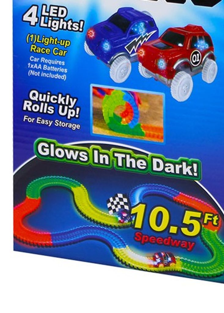 Magická svíticí dráha s LED autem. Spojením dílků si postav svoji velkou dráhu a když zhasneš dráha se rozzáří. Součástí je také auto, které má 4 LED světla (vyžaduje 1x baterii typu AA, která není součástí balení). Sada obsahuje 1 auto a 220 ks dráhy ve čtyřech barvách.
