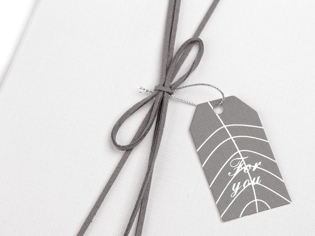 Dárková krabice s mašlí a visačkou