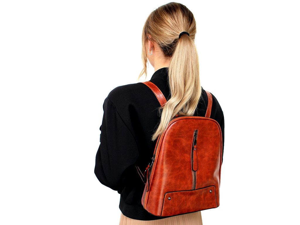 Stylový městský batoh ozdobený zipem se dá lehce přeměnit na crossbody kabelku. Skvěle doplní váš outfit. Díky syntetického materiálu, který vypadá jako kůže, má batoh punc kvality i vkusné originality. Je ideální na nošení do města, kanceláře i na výlety.Hlavní kapsa je na zip, je velice prostorná. Je rozdělená přepážkou na dva oddíly, v přepážce je umístěná kapsa na zip. Nechybí ani vnitřní kapsička na zip na drobnosti či mobil a kapsa na uložení plochých předmětů. Zip na přední straně batohu je pouze ozdobný. Na zadní straně batohu je umístěná malá plochá kapsa na zip. Ucho je pevné, krátké do ruky či na pověšení. Popruhy jsou dostatečně dlouhé s možností regulace pro pohodlné užívání během celého dne. Jsou podšité látkou. Nahoře jsou popruhy v kovových průvlecích, které slouží na protáhnutí popruhů na nošení křížem jako kabelka. Dno batohu je opatřené kovovými hřeby, které jej chrání před poškozením.
