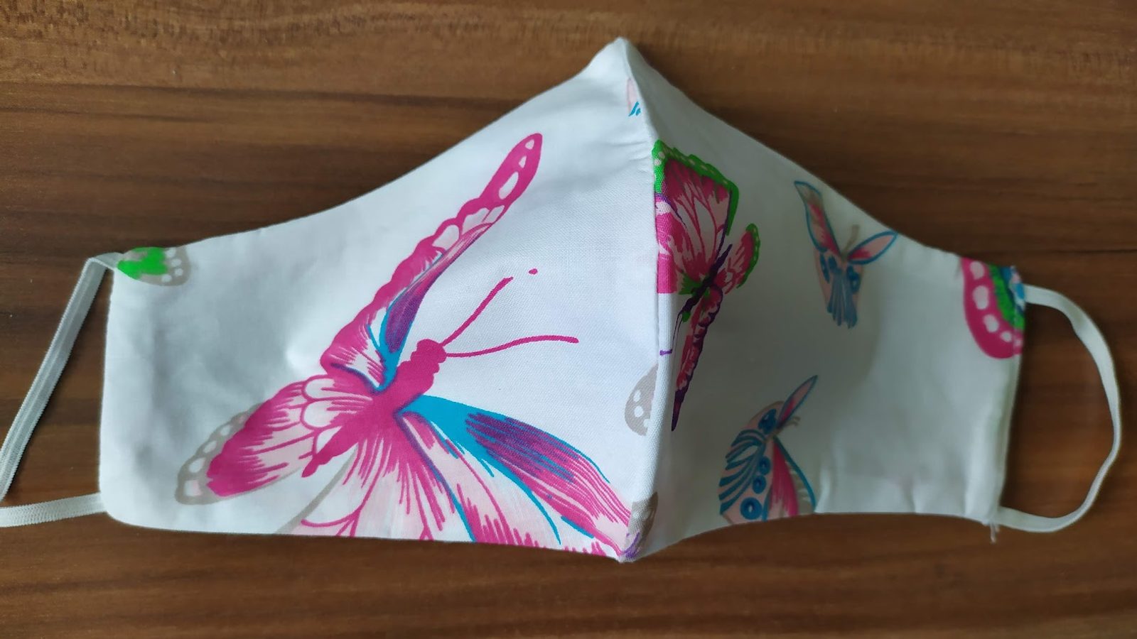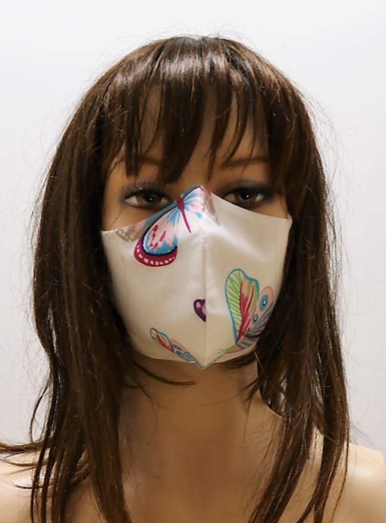 Dvouvrstvá bavlněná rouška pro ženy na gumičku od české firmy Vestis. Rouška s jarním potiskem motýla.