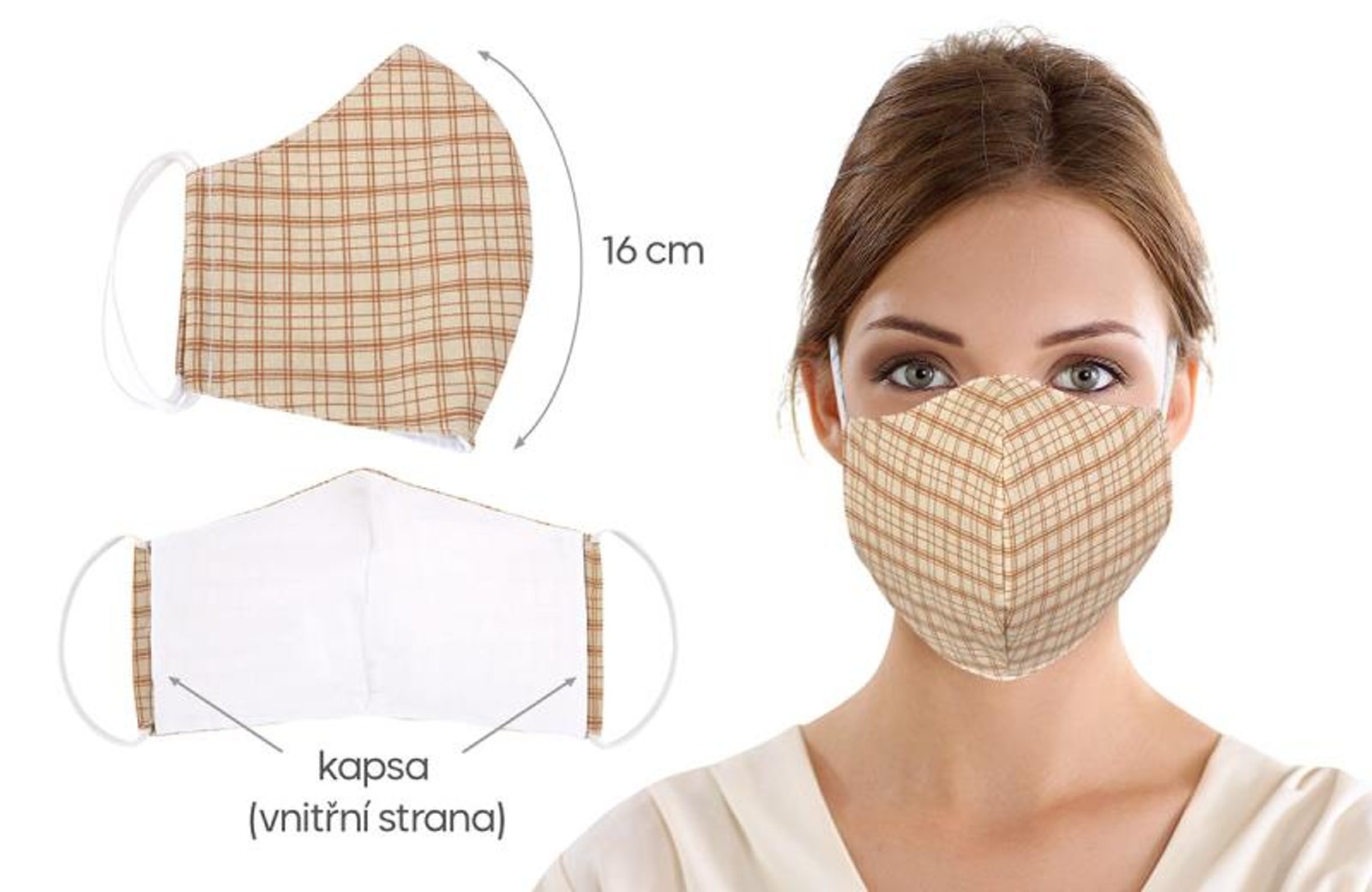 Ústní rouška bavlněná na gumičku s vnitřní kapsou - délka oblouku 16cm béžová mřížka naleznete v kategorii: Bavlněné roušky