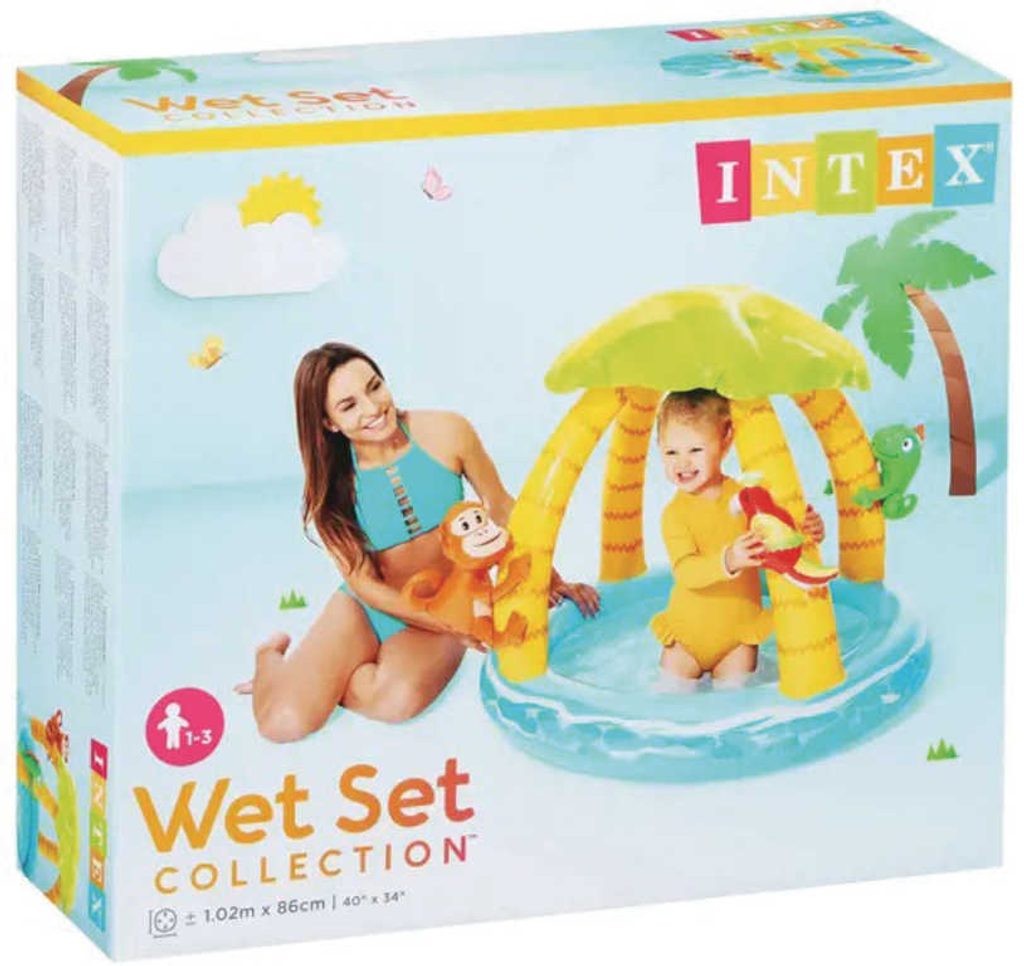 Praktická sada kruhového nafukovacího bazénu, plavacího kruhu a nafukovacího míče s veselým letním potiskem. Bazén je vyroben z masivního testovaného vinylu. Baleno v krabici.