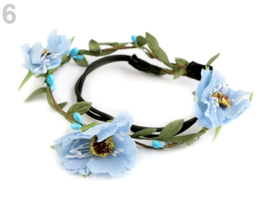 S bohémskou čelenkou s romantickými květy se budete cítit úžasně.Květy jsou propracované, s drobnými pestíky. Jsou přidrátované k drátěné kostře, která je obalená papírem a ovinutá prýmkem s lístečky. Drobné bobulky navíc celý věneček zjemňují.