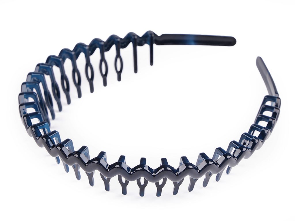 Plastová čelenka s vlnkami a hřebínkem se hodí pro dospělé i děti. Její povrch je lesklý a hladký. Čelenka se velice příjemně nosí, díky hřebínku s dlouhými zuby perfektně drží.- Šířka:: 0,9 cm