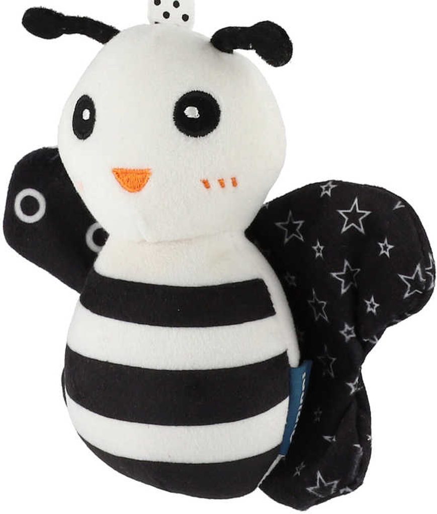 Krásná kontrastní závěsná hračka pro nejmenší děti, ve tvaru zvířátka, ve třech variantách provedení. Nejmenší děti přitáhne pozornost k hračce nejen černobílá barva, ale také tvary a odlesky třpytivých částí. Při pohybu vydává jemné, uklidňující, zvonivé zvuky. Včelička, sovička, brouček. Baleno na kartě, v sáčku.Hračky pro nejmenší děti mají krásný vzhled, jsou lehké a navíc fungují jako aktivní hračky - stimulují dítě vizuálně i prostřednictvím hmatu.