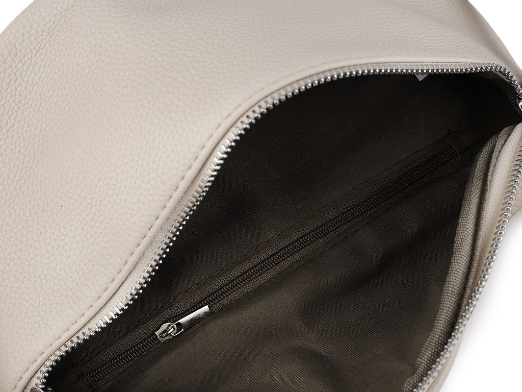 Elegantní crossbody kabelka z eko kůže má tvar ledvinky. Je praktickým módním doplňkem. Můžete ji nosit křížem přes rameno. Zapíná se na dva zipy ozdobené střapečkem, uvnitř najdete malou zipovou kapsičku na drobnosti. Jedna kapsa na zip je i na zadní straně kabelky. Popruh je odnímatelný, nastavitelný, je připevněný pomocí karabin.- Délka popruhu:: 78 - 125 cm