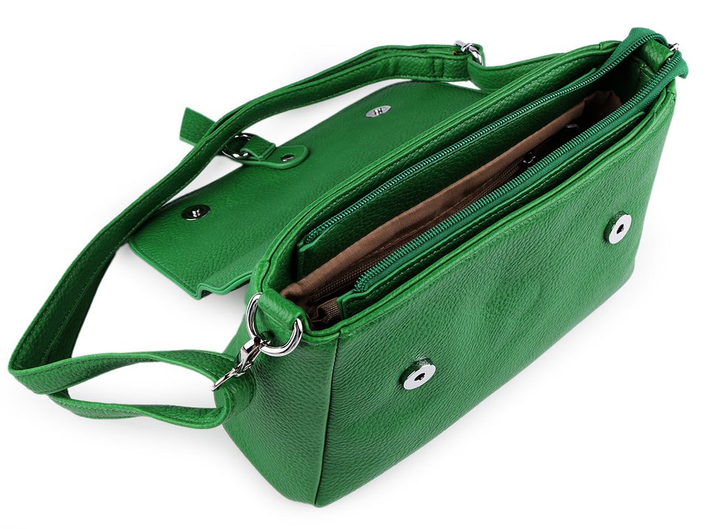 Módní kabelka je ozdobená knoflíkem a přezkou s kovový průvlekem. Je vyrobená z eko kůže, bude perfektní společnicí.Klopa kabelky se zapíná na 2 magnetická zapínání. Pod ní se uzavírá na zip. Uvnitř se nachází velký prostor, který je přepážkou rozdělený na 2 kapsy. V přepážce je umístěná kapsa na zip. V kabelce najdete ještě malou kapsu na drobnosti a malou kapsu na zip, která slouží k uschování drobných cenností. Na zadní straně je poslední kapsa na zip. Součástí kabelky je odnímatelný popruh s plynulou regulací délky na karabiny. Kabelku můžete nosit přes rameno nebo do kříže jako crossbody.