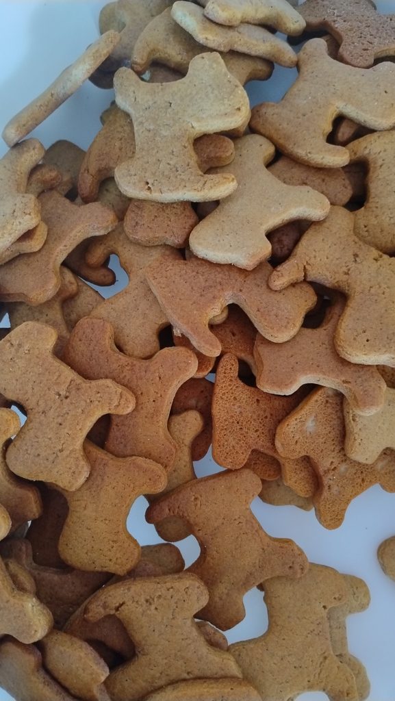 Malé tvarované perníčky, bez zdobení, balené v sáčku 250 g.