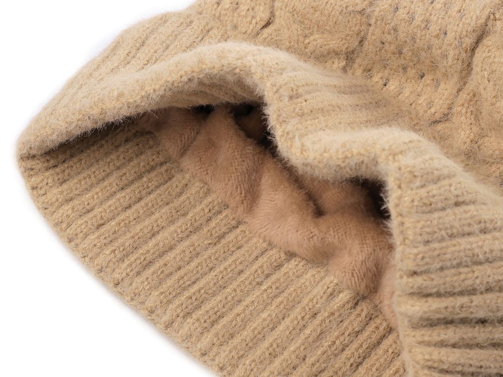 Pletená čepice s bambulí a copánkovým vzorem vás bude hřát celou zimu. Má ohrnutý okraj, uvnitř má jemný plyš, jenž je velice příjemný na dotek. Bambule věrně imituje pravou kožešinu.Volně položený obvod lemu je 40 cm, natažený až 60 cm. Výška lemu je 7,5 cm. Výška čepice je 23 cm bez bambule.
