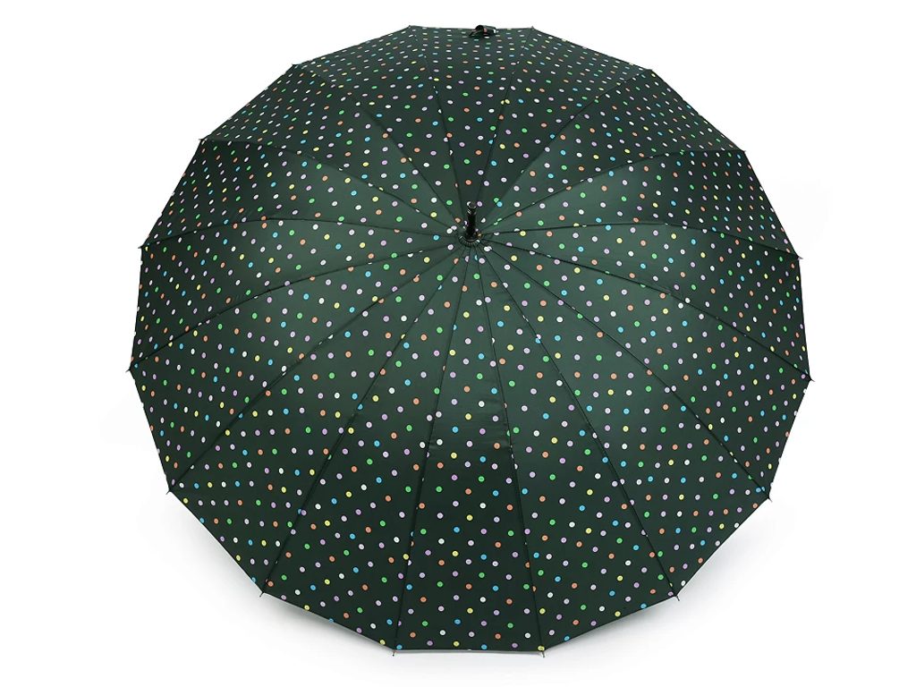 Duhový vystřelovací deštník vás spolehlivě ochrání před nepřízní počasí. Skládá se z šestnácti polí. Díky jeho velkému průměru 113 cm je vhodný jako deštník pro dva (rodinný deštník). Konstrukce je vyrobena z pružných lamel zajišťujících vysokou pevnost a stabilitu. Deštník má klasickou tyč zakončenou pevnou rukojetí. Hloubka deštníku je 30 cm.- Rukojeť:: plastová