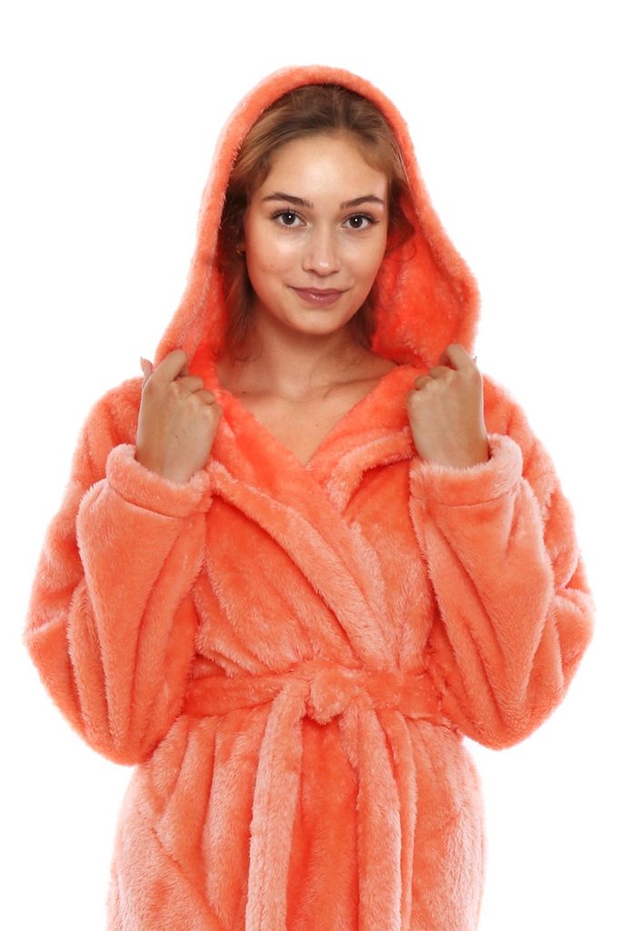 Dámský 3/4 župan Lilly Extra v lososové barvě s kapucí je perfektní volbou pro chvíle odpočinku i aktivní dny doma.