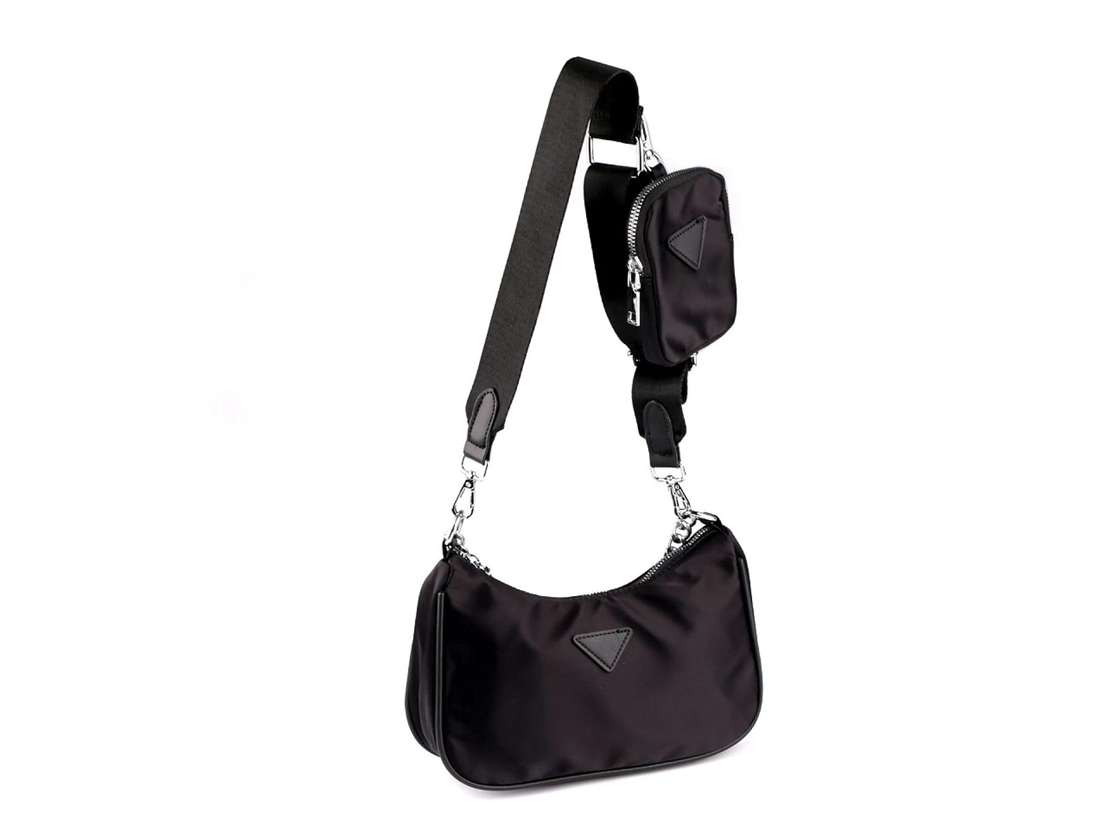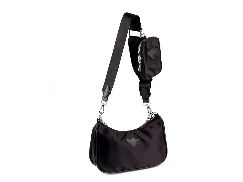 Stylová nylonová kabelka 2v1 je ideální volbou pro každou moderní ženu. Je výjimečná svou univerzálností, snadno ji sladíte s jakýmkoliv outfitem. Kabelku můžete používat samostatně, zatímco menší pouzdro na karabinu je ideální pro drobnosti, které potřebujete mít neustále po ruce.Kabelka se zavírá na zip. Uvnitř má malé kapsy na drobnosti a malou kapsu na zip, která slouží k uschování drobných cenností. Na zadní straně má poslední kapsu na zip. Součástí kabelky je řetízkové ucho do ruky a odnímatelný popruh s plynulou regulací délky na karabiny. Díky němu kabelku můžete nosit přes rameno nebo do kříže jako crossbody. Na popruhu je umístěné kovové očko na připnutí menšího pouzdra, které se uzavírá na zip.