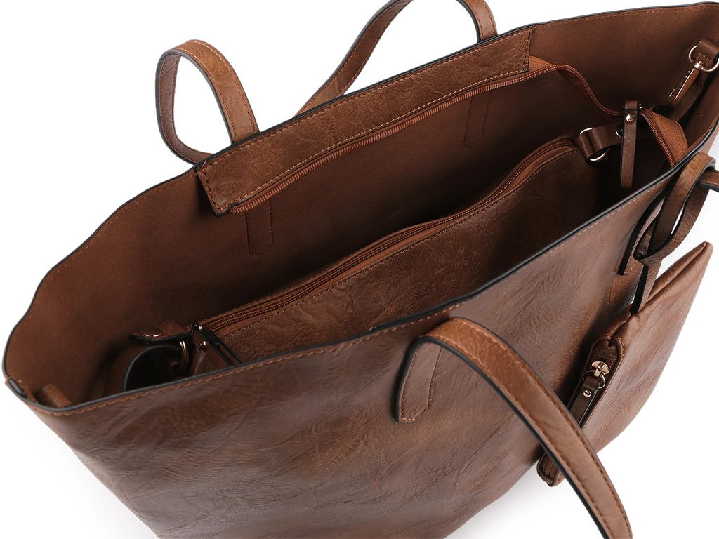 Prostornou kabelku 3v1 si zamilujete pro její jednoduchý, elegantní a čistý design. Má ucha vhodná k nošení v ruce i na rameni. Uvnitř kabelky najdete 2 vkládací pouzdra, z jednoho můžete udělat crossbody kabelku, druhé můžete nosit v ruce. Tato sada 3v1 je vhodná na běžné nošení i cestování, kde naplno využijete její přednosti.Velká kabelka má rozšířené dno, uzavírá se na zip. Disponuje velkým prostorem. Uvnitř má polokroužky na uchycení popruhu a přezky s patenty k upnutí vkládacího pouzdra. Pouzdro se zavírá na zip, uvnitř má menší kapsy a kapsu na zip na uschování malých cenností. K pouzdru můžete připnout odnímatelný popruh na karabiny s plynulou regulací délky, který umožňuje jeho pohodlné nošení na rameni nebo jako crossbody.