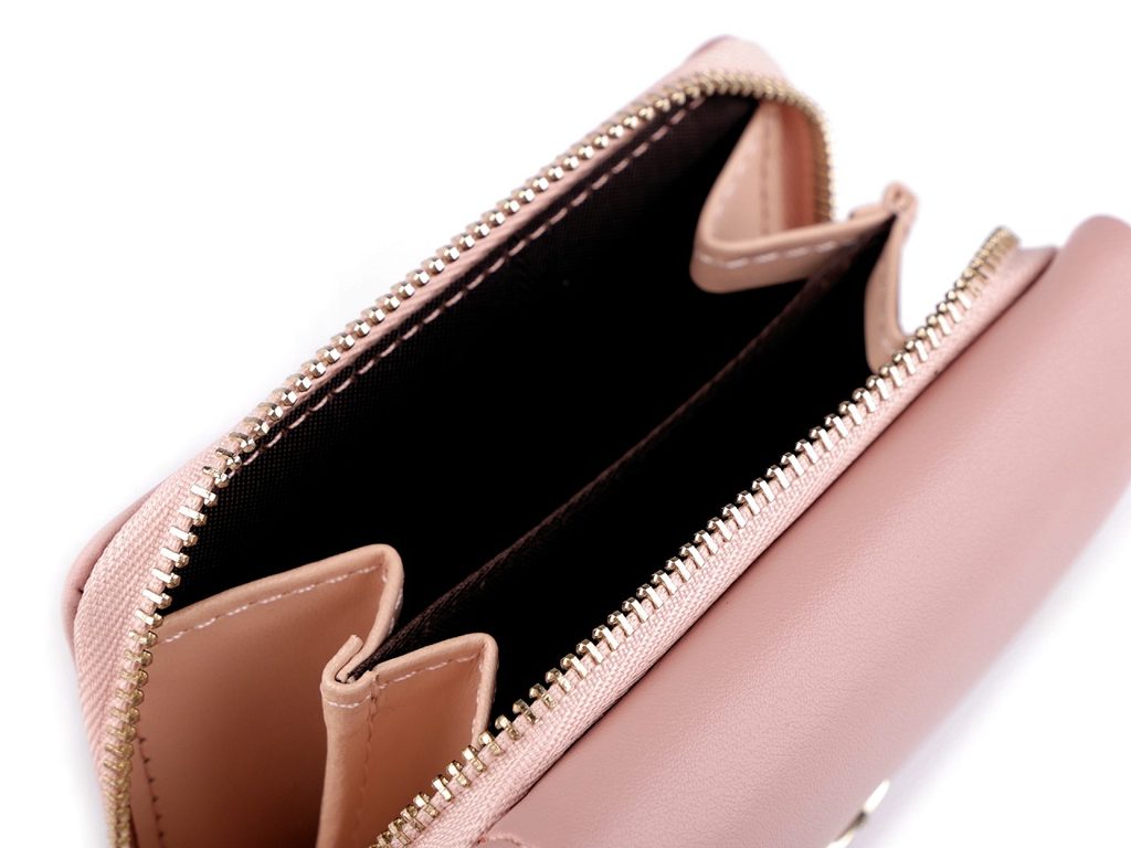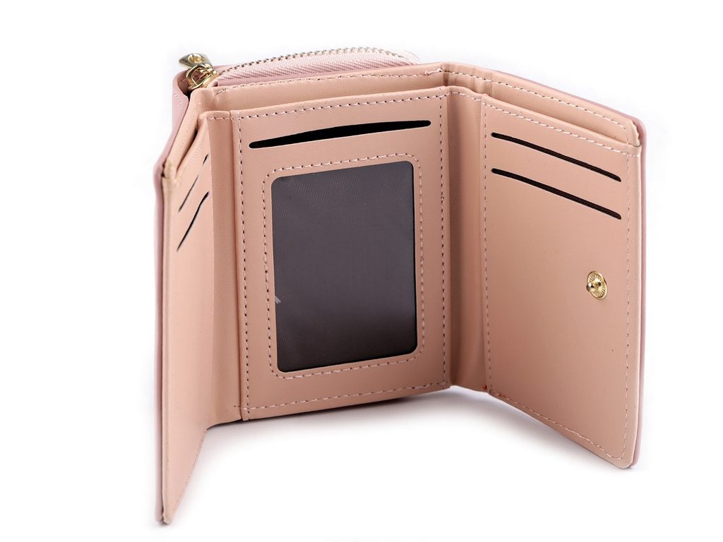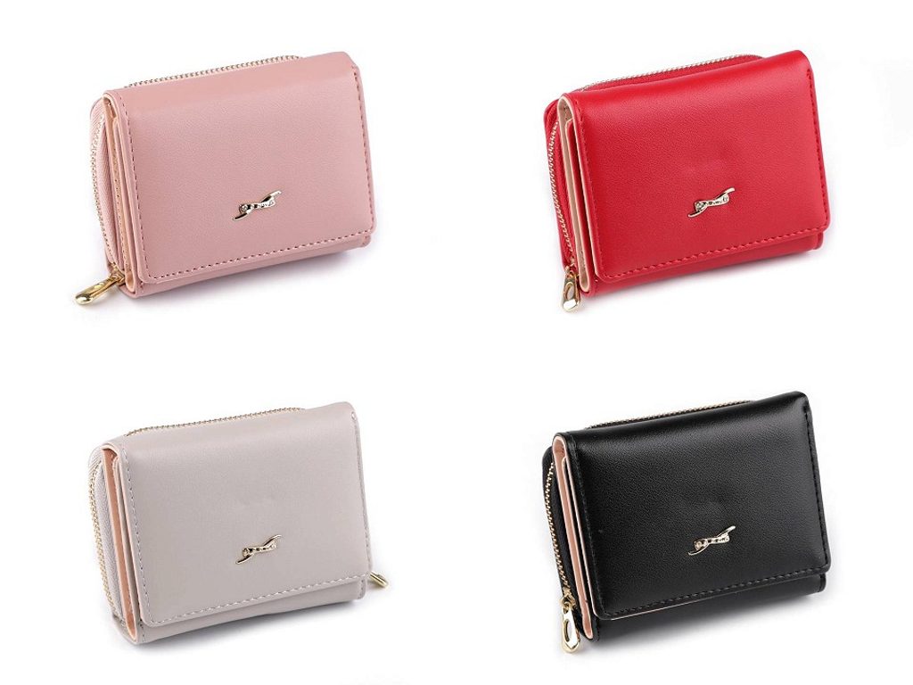 Malá stylová peněženka se vejde do každé kabelky. Klopu peněženky zdobí kovová ozdoba s broušenými kamínky.