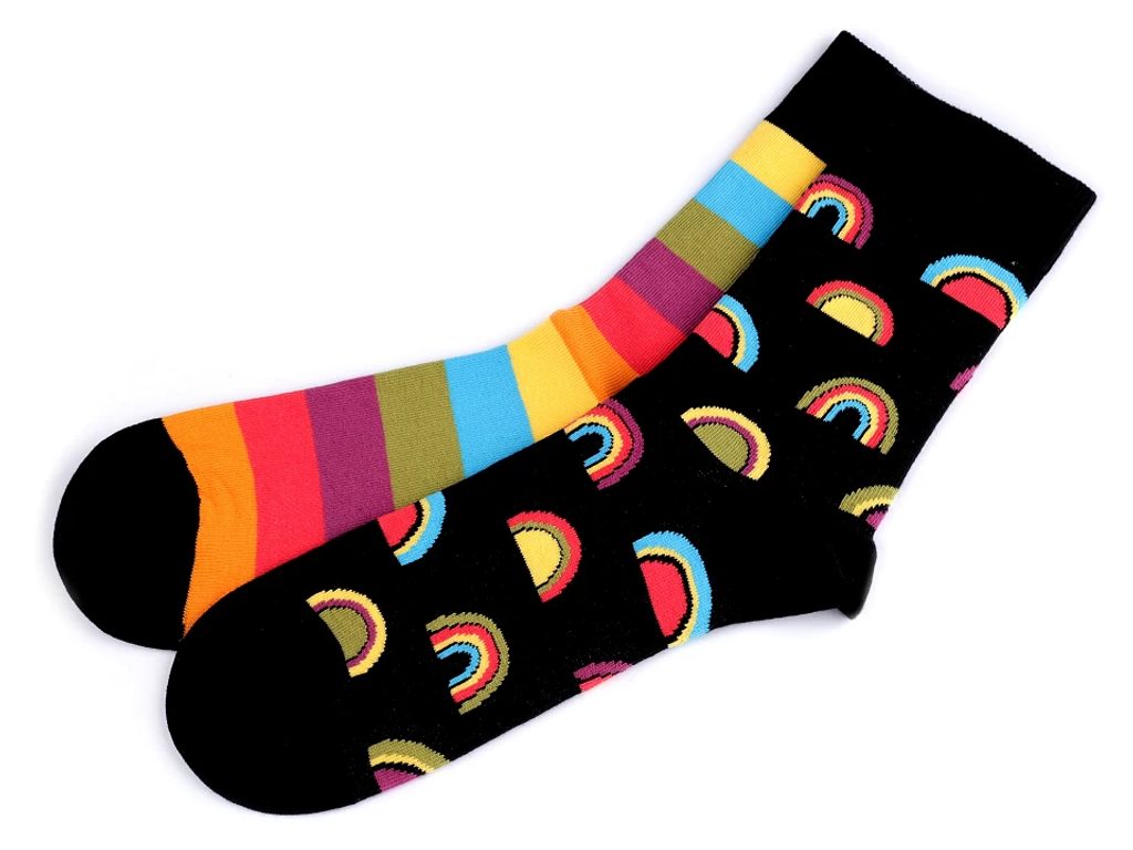 Veselé ponožky s obrázky jsou hitem. Svým designem dokáží potěšit i pobavit zároveň. Jsou zabalené v dárkové plastové kouli s mašlí, což ocení všichni, kteří neradi balí dárky.Specialitou těchto párů je, že je každá ponožka jiná, ale navzájem spolu ladí. Hodí se jak do klasických bot tak do sportovních tenisek, vždy vypadají stylově. Příjemně se nosí po celý rok. Jsou pružné a prodyšné. Ve špičce mají pohodlný plochý šev, netlačí.