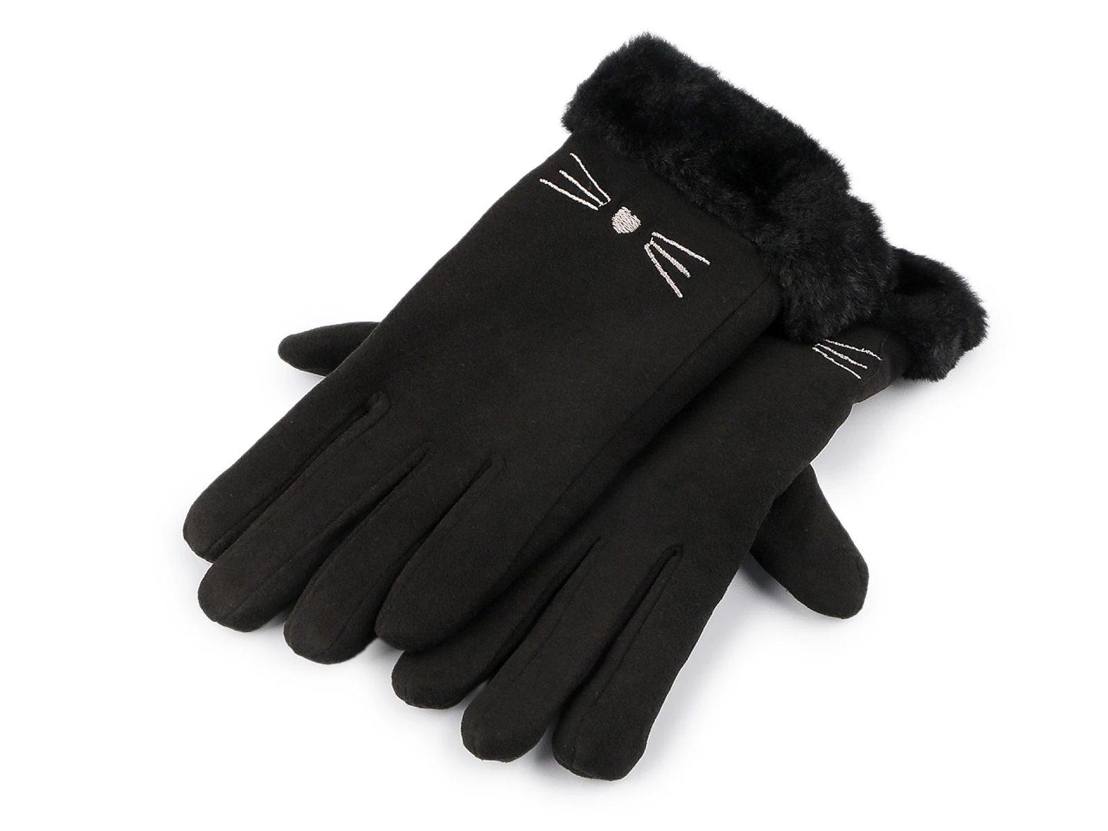 Elegantní dívčí rukavice zdobí výšivka čumáku a kožešinový lem. Rukavice jsou jemně pružné. Uvnitř mají příjemný plyšový kožíšek. Hodí se do zimy i do chladnějšího podzimního počasí. Na ukazováčku pravé ruky je vyšitý květ, díky kterému se dají ovládat dotykové přístroje - mobil, tablet, bankomat apod.Šířka je měřená na volně položených rukavicích uprostřed (bez palce).