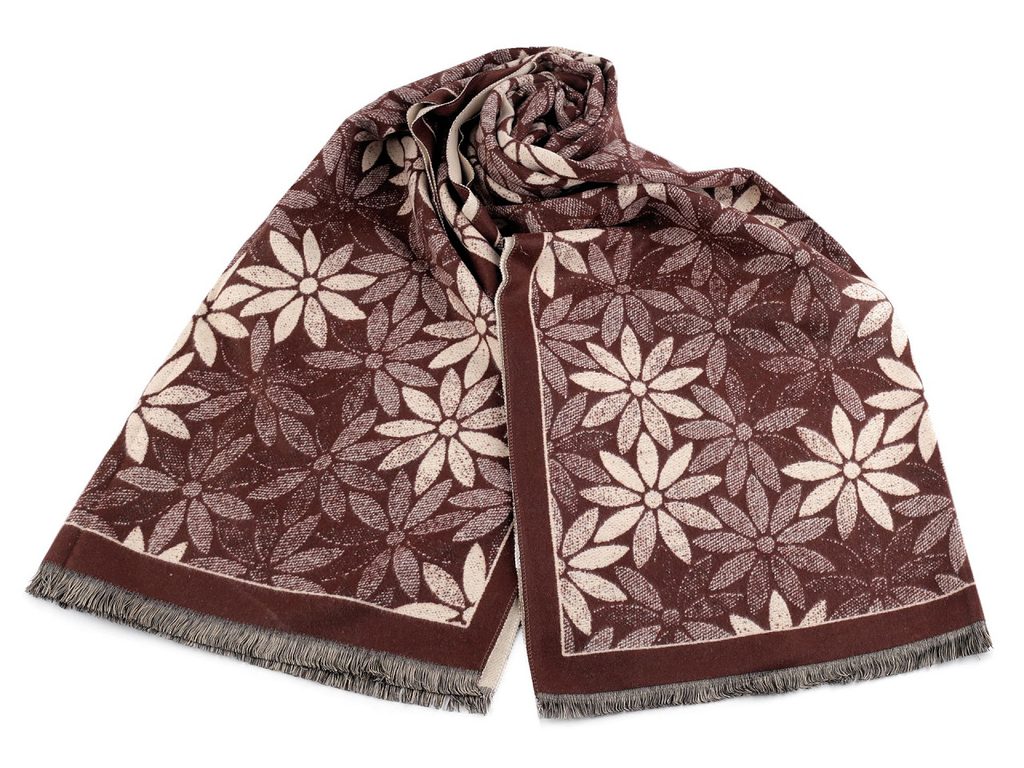 Šátek / šála typu kašmír s třásněmi, květy 60x180 cm