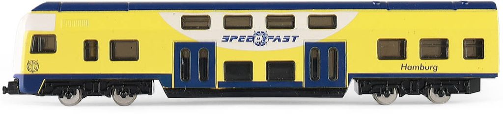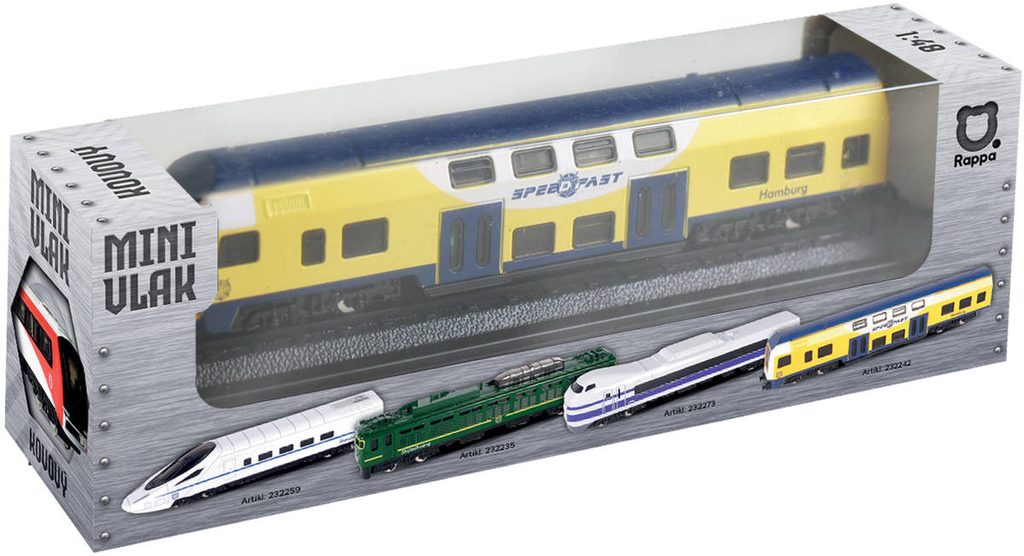 Vlak regionální kovový model mini 1 vagon žlutomodrý v krabici