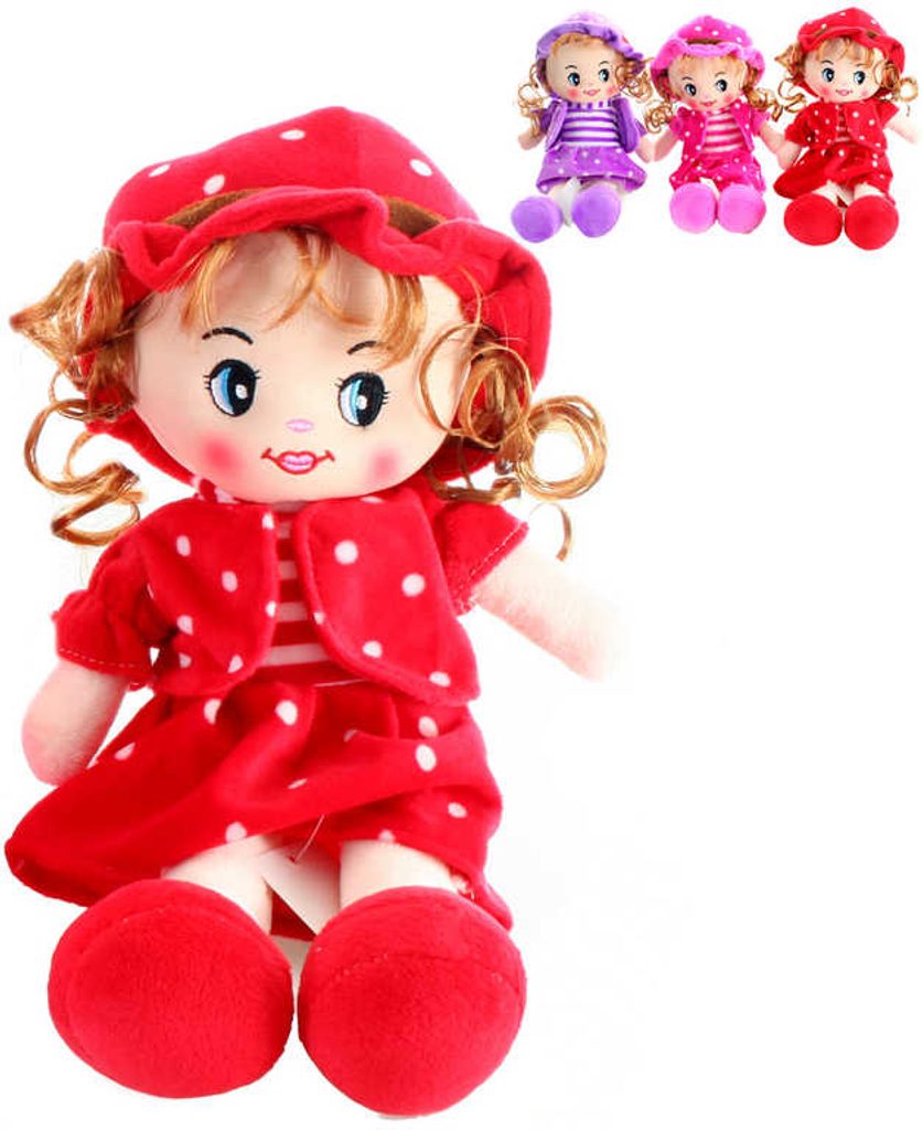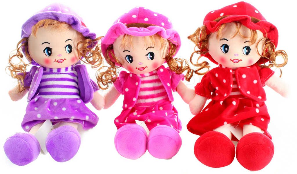 Panenka soft textilní 33cm měkká v šatičkách s kloboučkem 3 barvy
