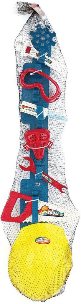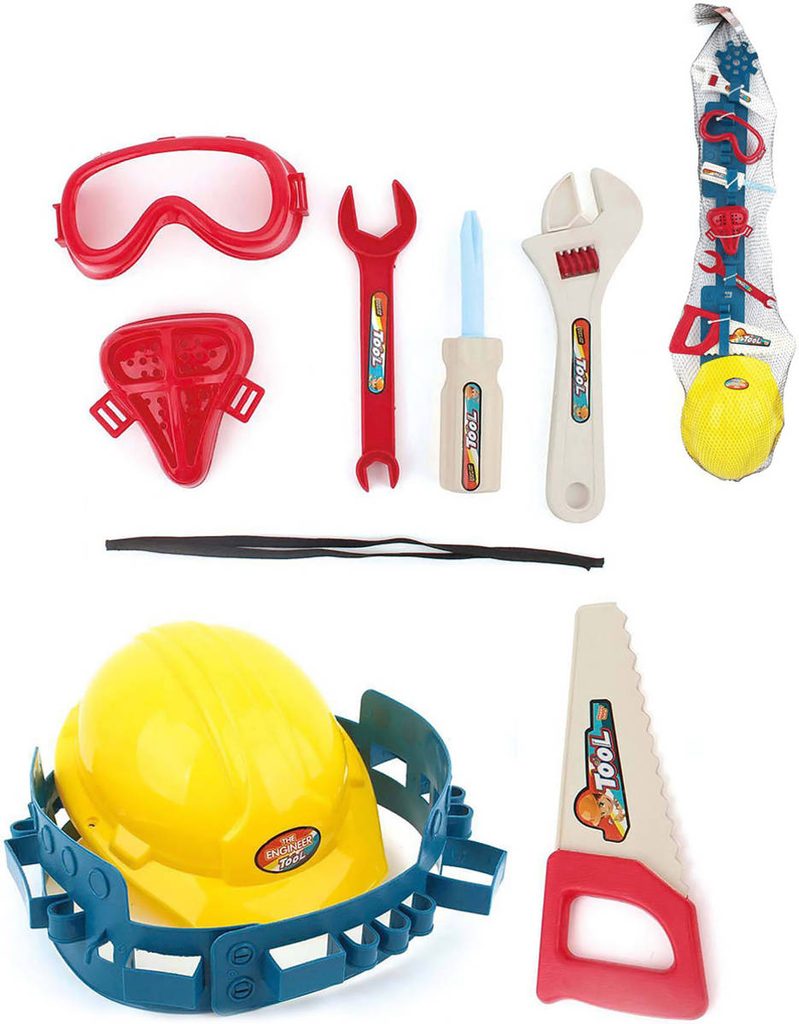 Pracovní nářadí dětské plastové na opasku set s ochrannou helmou