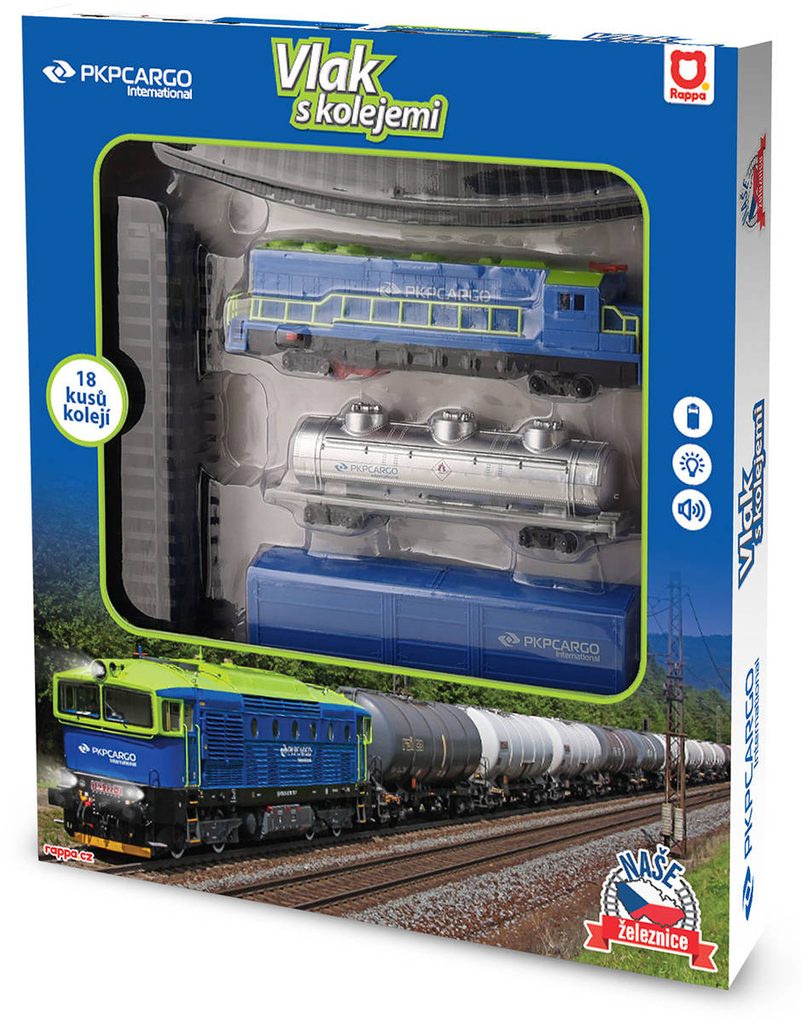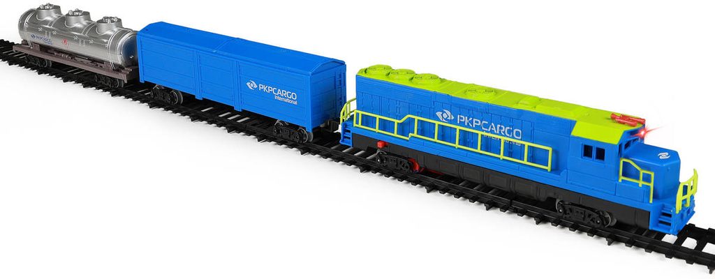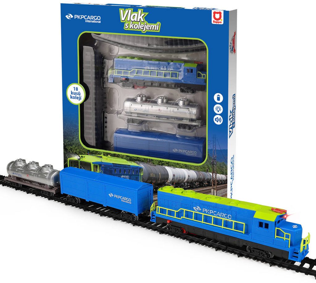 Vlak nákladní PKP Cargo lokomotiva + 2 vagony s kolejemi na baterie Světlo Zvuk