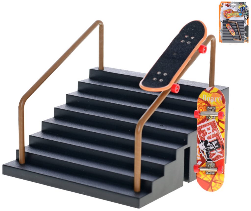 Skateboard prstový fingerboard herní set s rampou schodiště kov