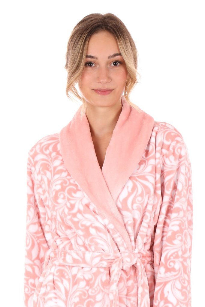 Romantický hřejivý župan pro ženy Flora v pastelově růžové barvě od českého výrobce županů Vestis.