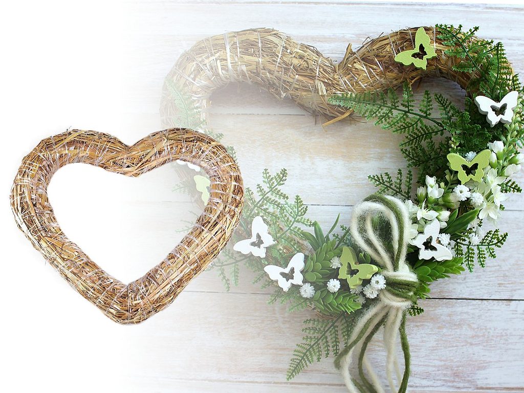 Slaměné srdce se bude vyjímat jako svatební i celoroční ozdoba. Můžete ho dozdobit stuhou, sušenými či umělými květy nebo drobnými dekoracemi.