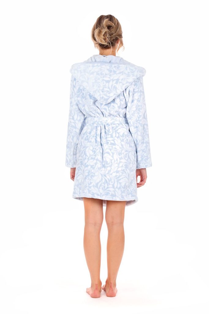 Krátký dámský župan s kapucí Flora ledově modrá 48 56 5203