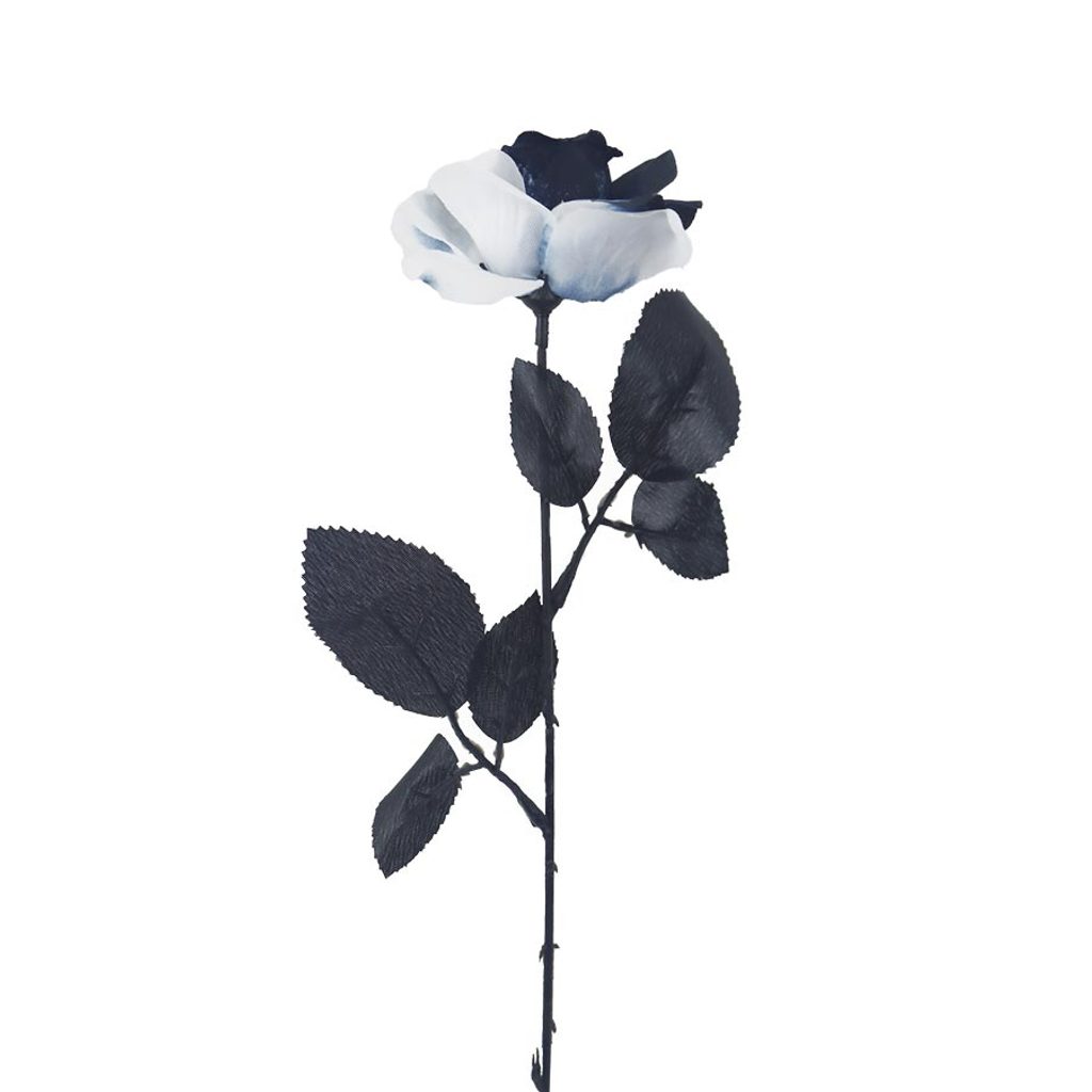 Umělá černobílá růže s malou lebkou ve středu květu. Ideální pro strašidelnou výzdobu.Rozměr: 8×8×42 cm