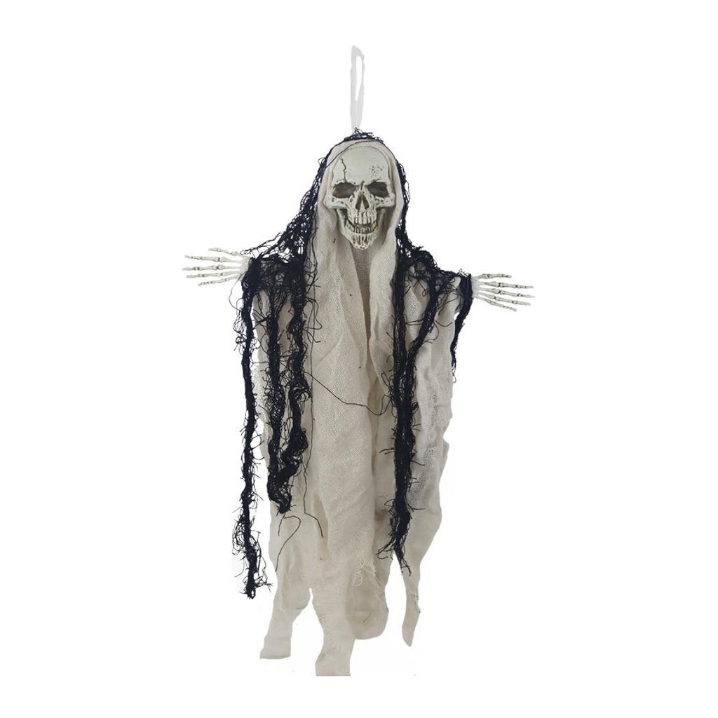 Závěsná kostra s hadrovým hábitem. Perfektní doplněk pro strašidelnou atmosféru.Rozměr: 35×6×50 cm