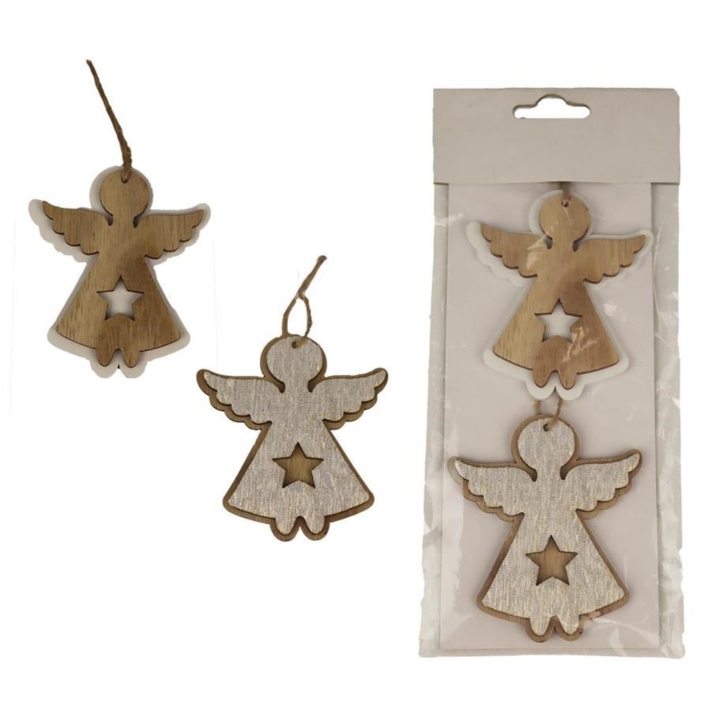 Sada dekoračních andělů k zavěšení. Sada obsahuje 2 andílky. Rozměry : 7 x 0,8 cm, výška 8 cm. Barva : kombinace přírodní s bílou, bílá s přírodní. Materiál na bázi dřeva.