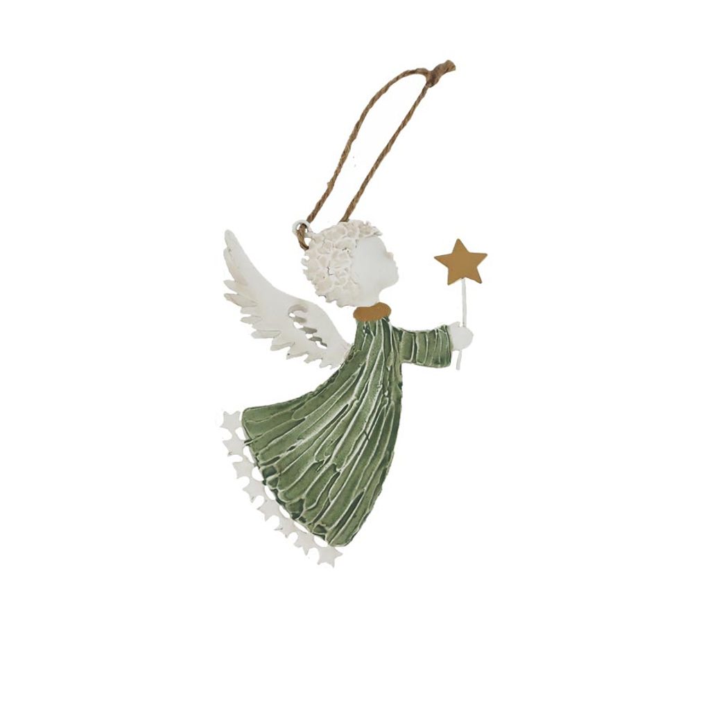 Dekorační anděl k zavěšení.Rozměr: 10.5 × 12.5 × 1 cm