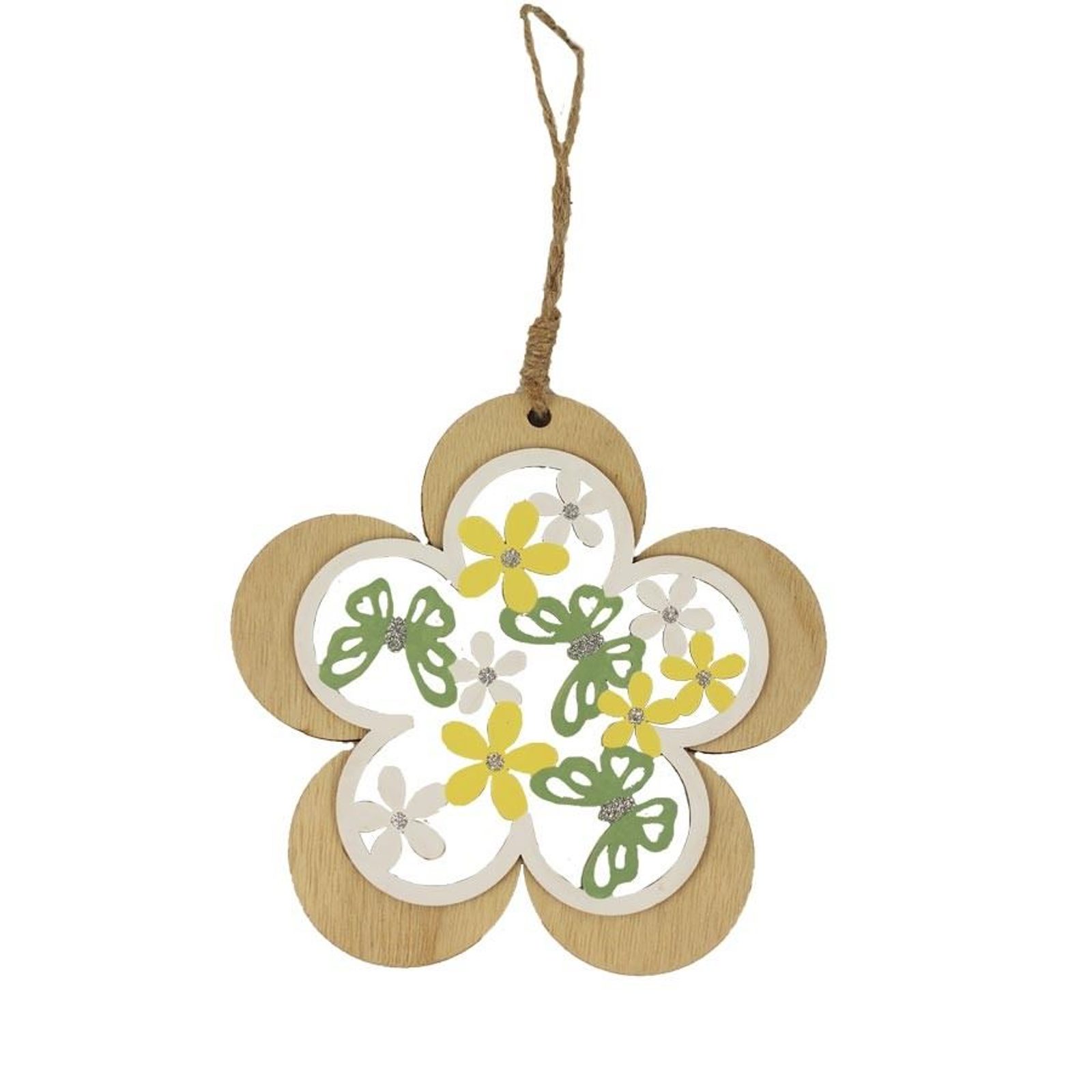 Dekorační kytka k zavěšení. Rozměry : Barva : kombinace přírodní s bílou, žlutou, zelenou. Materiál na bázi dřeva.Podobné produkty z kategorie DEKORACE K ZAVĚŠENÍ ►