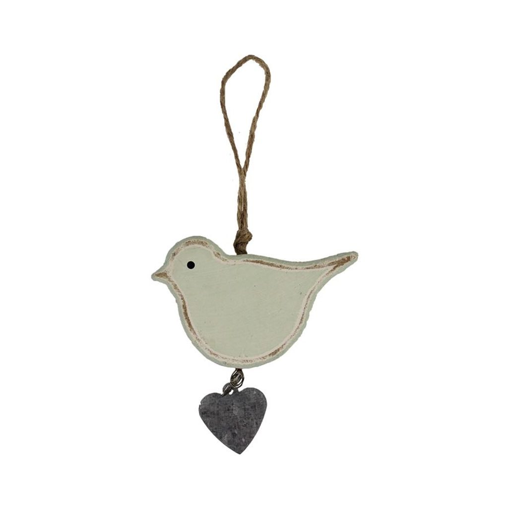 Dekorační ptáček k zavěšení. Rozměry : 7,8 x 2 cm, výška 4,5 cm. Barva : bílá. Materiál na bázi dřeva.Rozměr: 7.8 x 2 a 4,5 cm