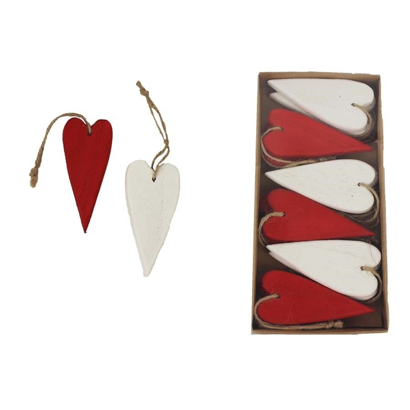 Sada dekoračních srdíček k zavěšení. Sada obsahuje 12 srdíček. Rozměry : Barva : kombinace červení, bílá. Materiál na bázi dřeva.