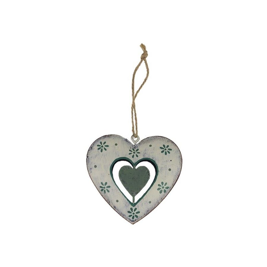 Dekorační srdce k zavěšení. Rozměry : 7 x 7,8 cm, tloušťka 1,3 cm. barva : kombinace zelená s bílou. Materiál : kov.Podobné produkty z kategorie DEKORACE K ZAVĚŠENÍ ►