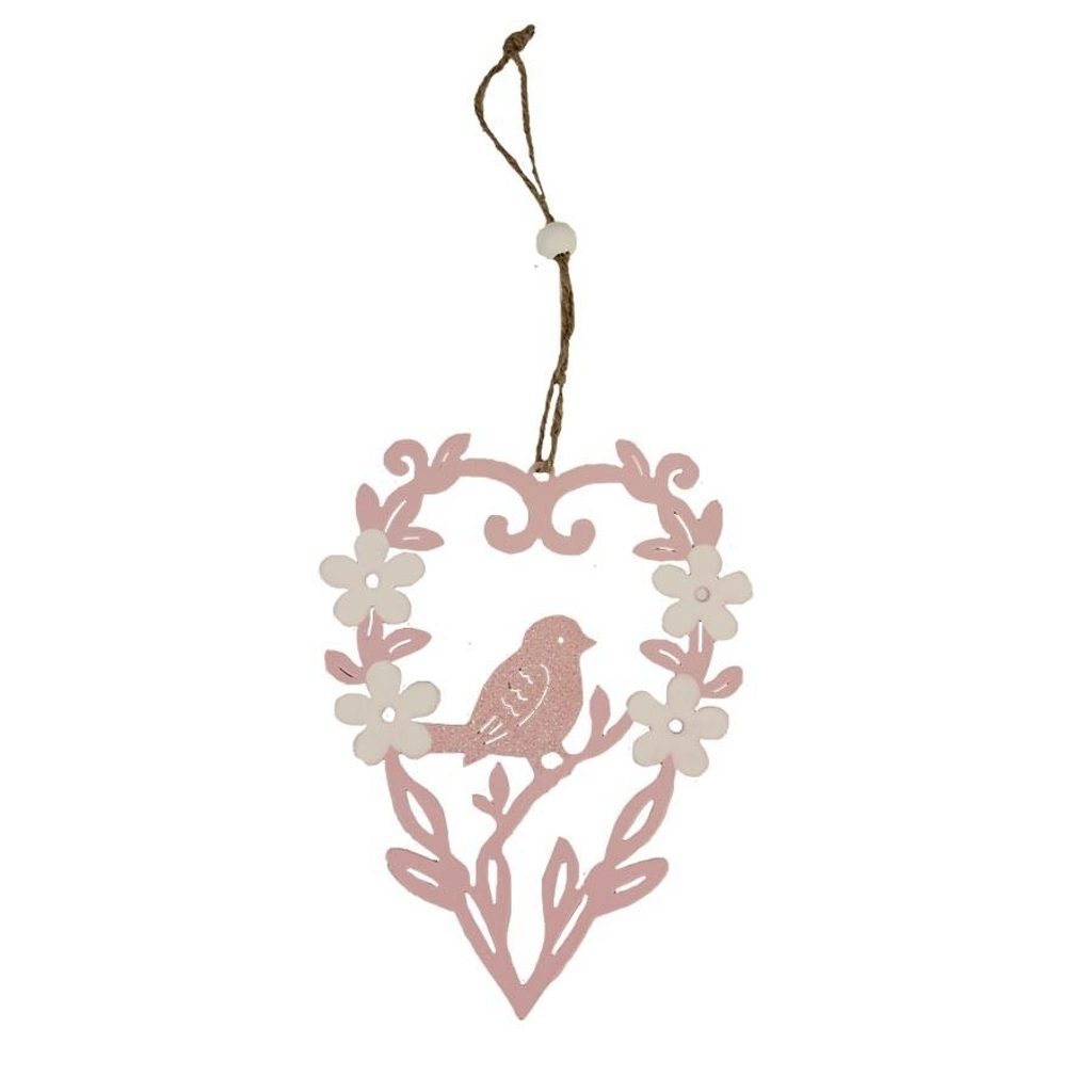 Dekorační srdce k zavěšení. Rozměry : 12 x 15 cm, tloušťka 0,1 cm. Barva : kombinace růžová s bílou. Materiál : kov.