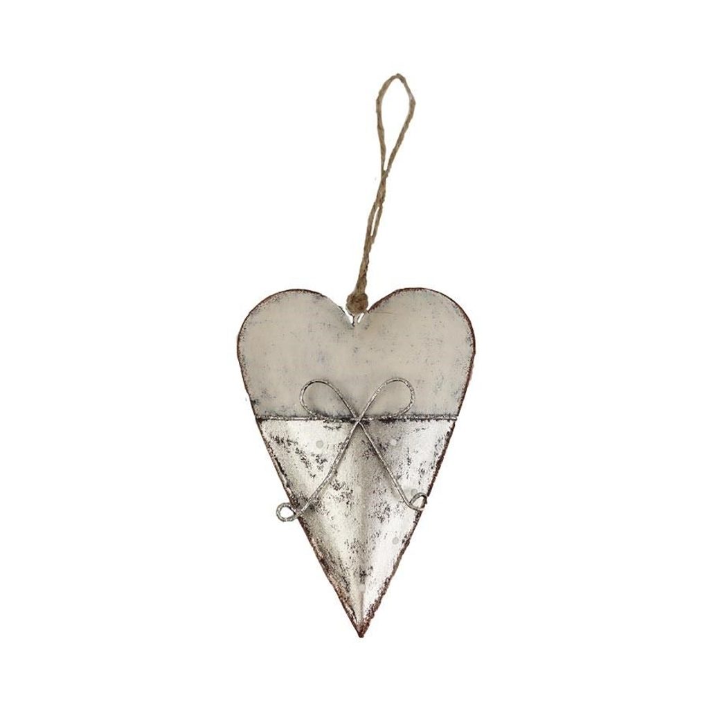 Dekorační srdce k zavěšení. Rozměry : 7,6 x 2,5 cm, výška 11 cm. Barva : kombinace stříbrná s bílou. Materiál : kov.Rozměr: 7.6 x 2.5 x 11 cm