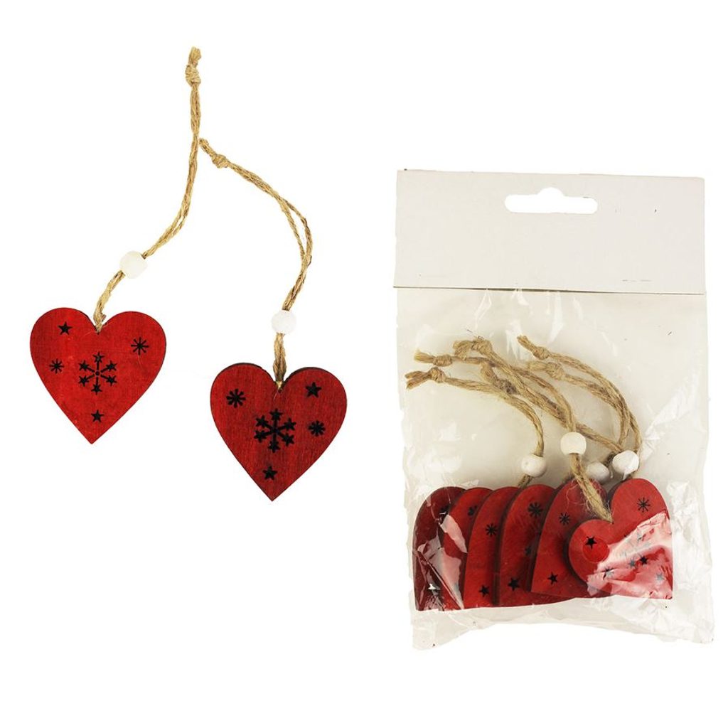 Sada srdíček k zavěšení. Sada obsahuje 6 srdíček. Rozměry : 3,8 x 4 cm, tloušťka 0,5 cm. Barva : červená. Materiál : překližka.