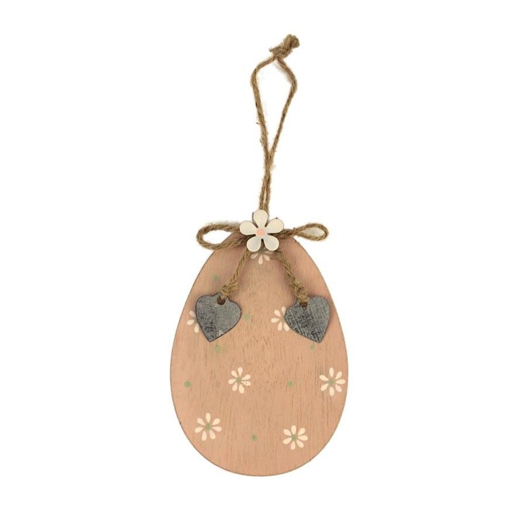 Dekorační vajíčko k zavěšení. Rozměry : 7,8 x 0,5 x 11 cm. Barva : přírodní s bílou. Materiál na bázi dřeva.